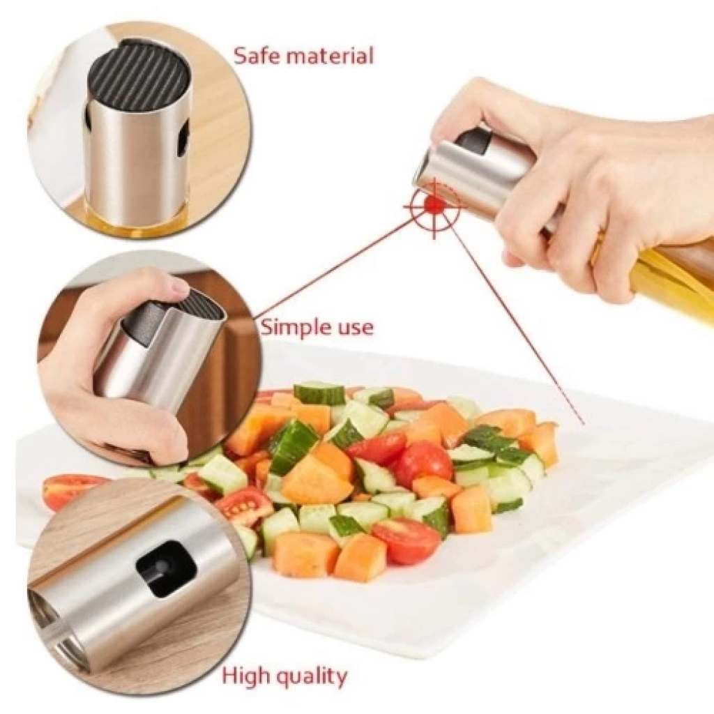 100 ml Çok Amaçlı Spreyli Cam ŞişeÜrün Özellikleri1. Zeytinyağı, soya sosu, sirke ve diğer sıvı çeşnileri için kullanılabilecek Spreyli Cam Şişe malzemesidir.2. Az miktarda sprey, etkili bir şekilde sprey miktarını kontrol edebilir, evde pişirmenin iyi bir yardımcısıdır.3. Cam doku korozyon olmadan sıvıların her türlü tutabilir. Şişe gövdesi şeffaftır ve sıvıyı takip edebilirsiniz.4. Pişirme, barbekü, salata vb.için kullanılabilir.Ürün malzemesi: Cam gövde + ABS kapKapasite: 100 mlÇap: 4 cm Yükseklik: 18 cmBaşlık Renk: GümüşPaket İçeriği1 Adet 100 ml Çok Amaçlı Spreyli Cam Şişe