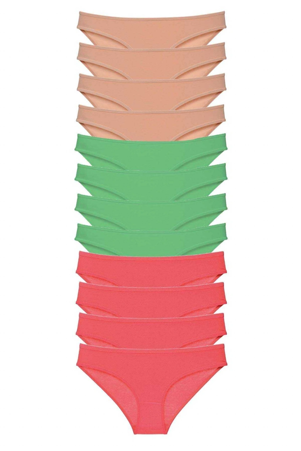 12 adet Süper Eko Set Likralı Kadın Slip Külot Ten Yeşil Fuşya