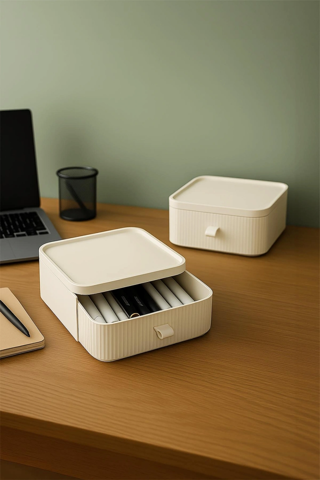 Ürün Hikayesi: 2 katlı çekmeceli organizer, şıklığı ve fonksiyonelliği bir araya getirerek hem evde hem ofiste kullanım için tasarlandı. Makyaj malzemelerinden ofis araç gereçlerine kadar birçok eşya için düzenli bir alan sunar.