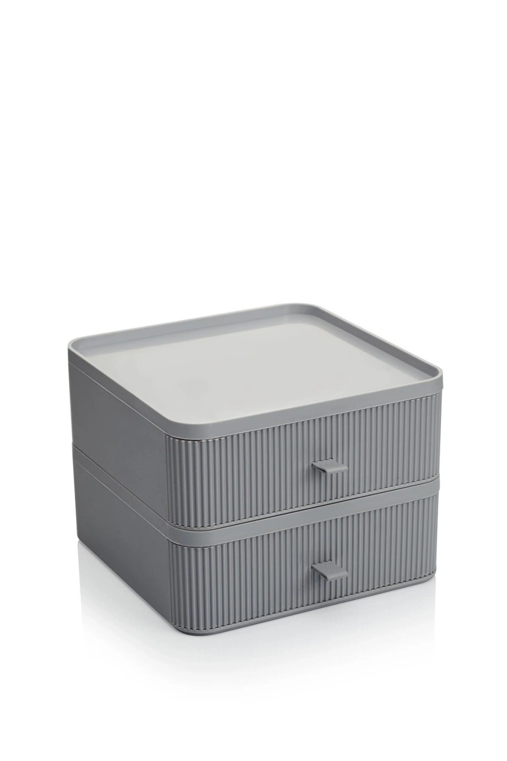 Ürün Hikayesi: 2 katlı çekmeceli organizer, şıklığı ve fonksiyonelliği bir araya getirerek hem evde hem ofiste kullanım için tasarlandı. Makyaj malzemelerinden ofis araç gereçlerine kadar birçok eşya için düzenli bir alan sunar.