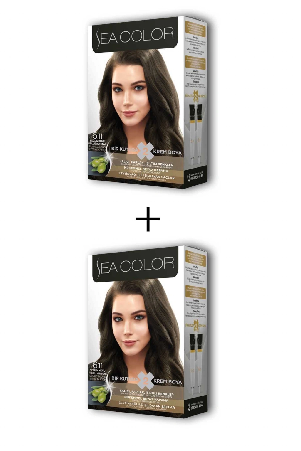 Sea Color 2X2 tüp Krem Saç Boyası Seti Yoğun Koyu Küllü Kumral No:6.11