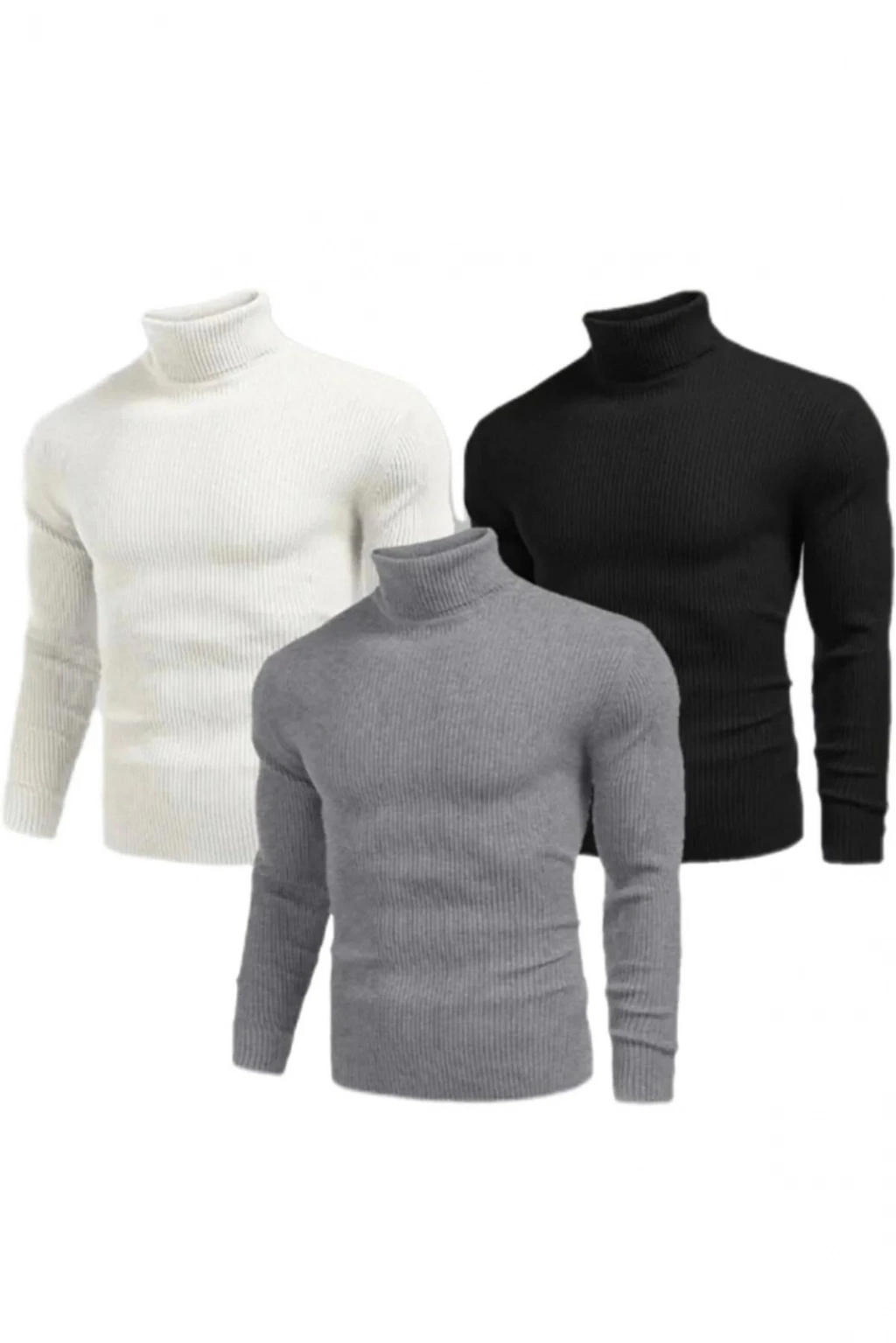 3 Adet Kaşkorse Boğazlı Full Likralı Fitilli Body Kazak