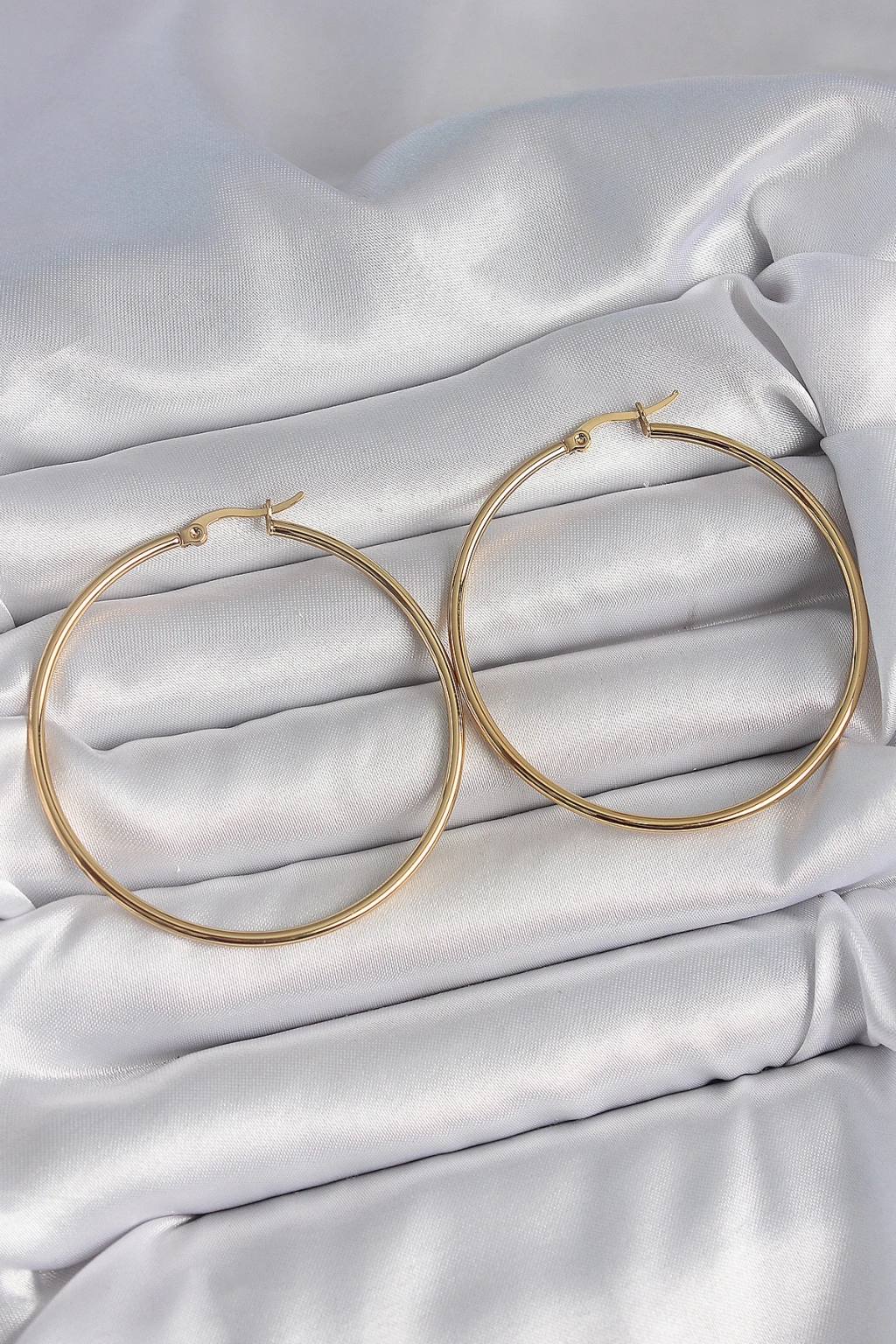316 Çelik Gold Renk 53 mm Halka Model Kadın Küpe