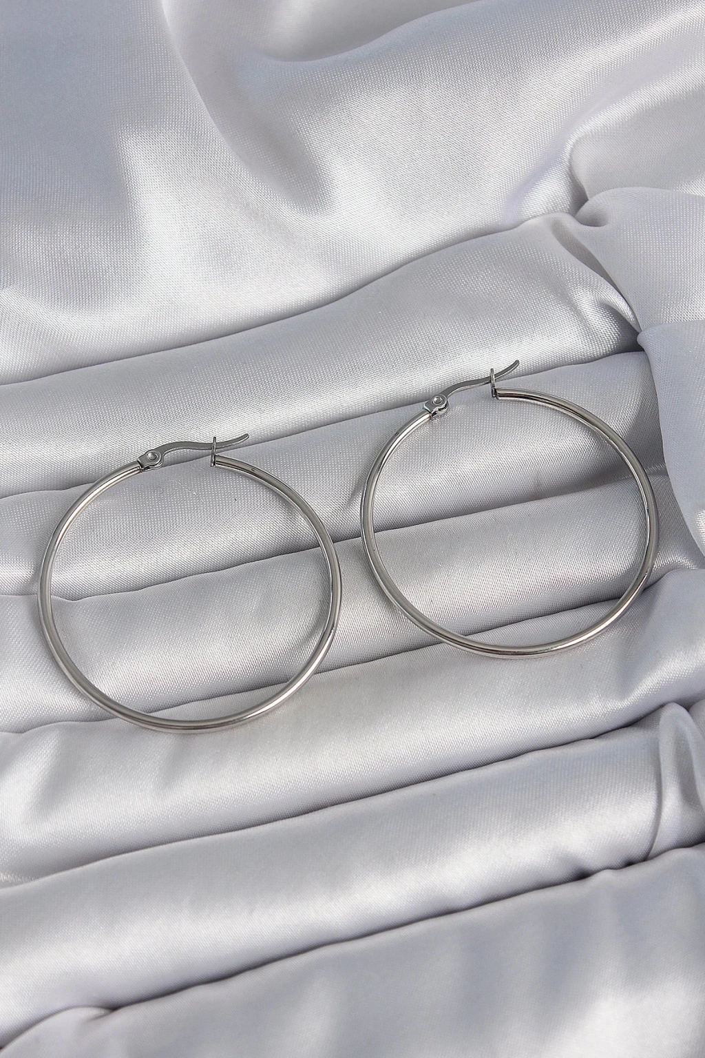 316 Çelik Gümüş Renk 43 mm Halka Model Kadın Küpe