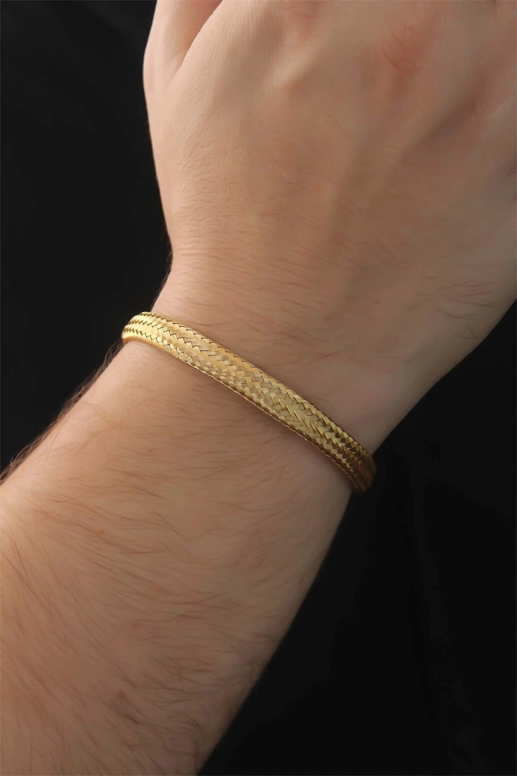 316L Çelik Altın Renk Hasır Görünüm Erkek Bileklik
