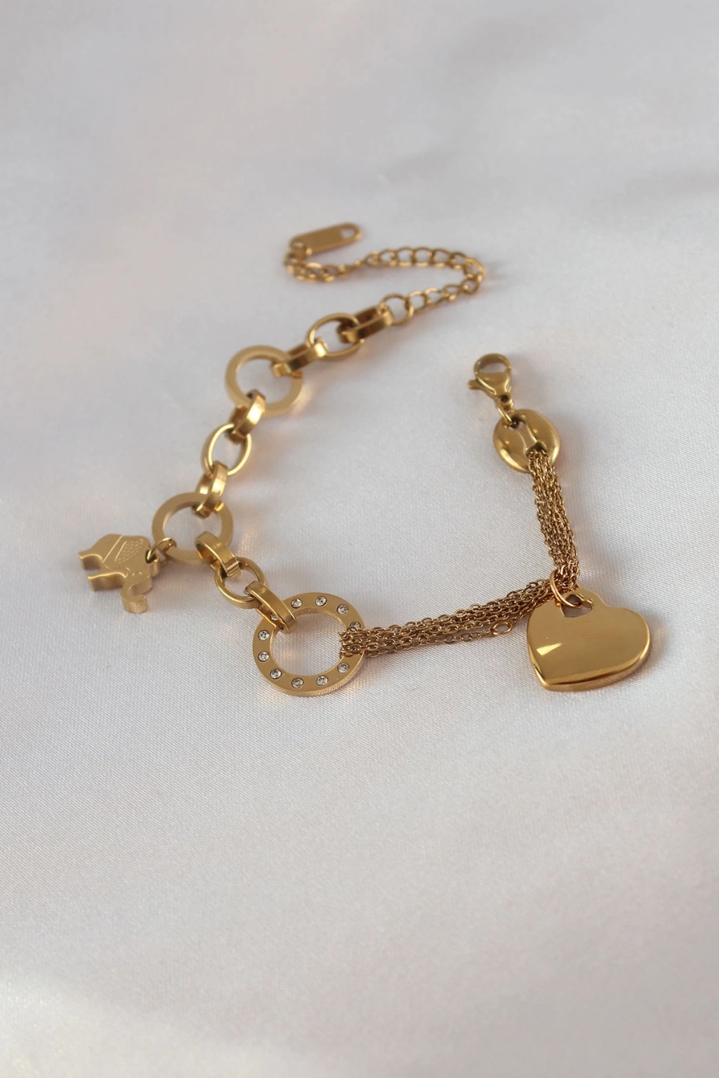 316L Çelik Gold Renk 2'li Zincir Model Zirkon Taş Detay Kadın Bileklik