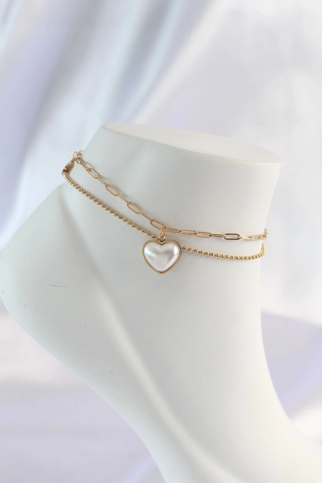 316L Çelik Gold Renk Beyaz Kalpli 2li Halhal