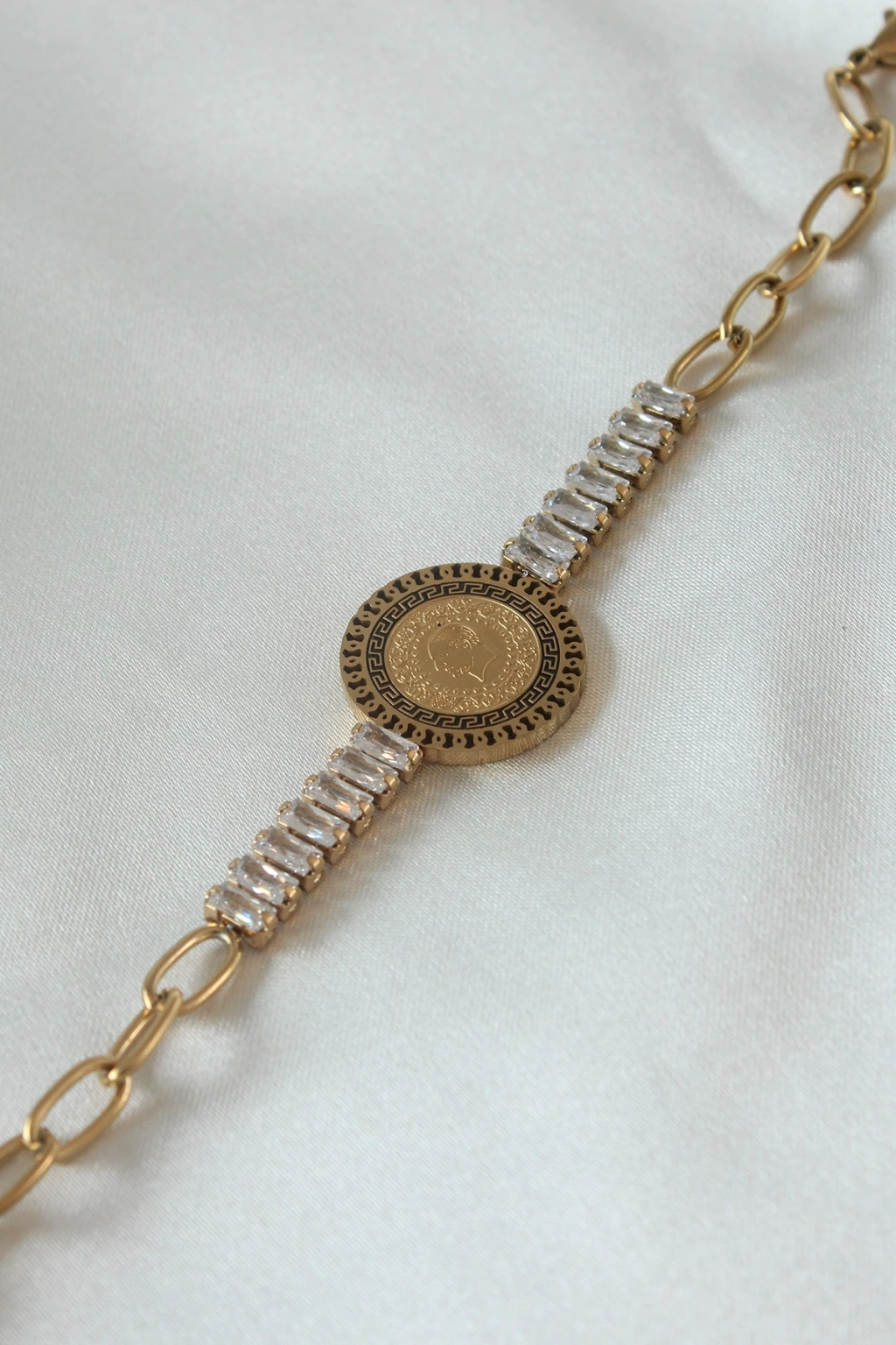 316L Çelik Gold Renk Tam Altın Modelli Zirkon Taşlı Kadın Bileklik