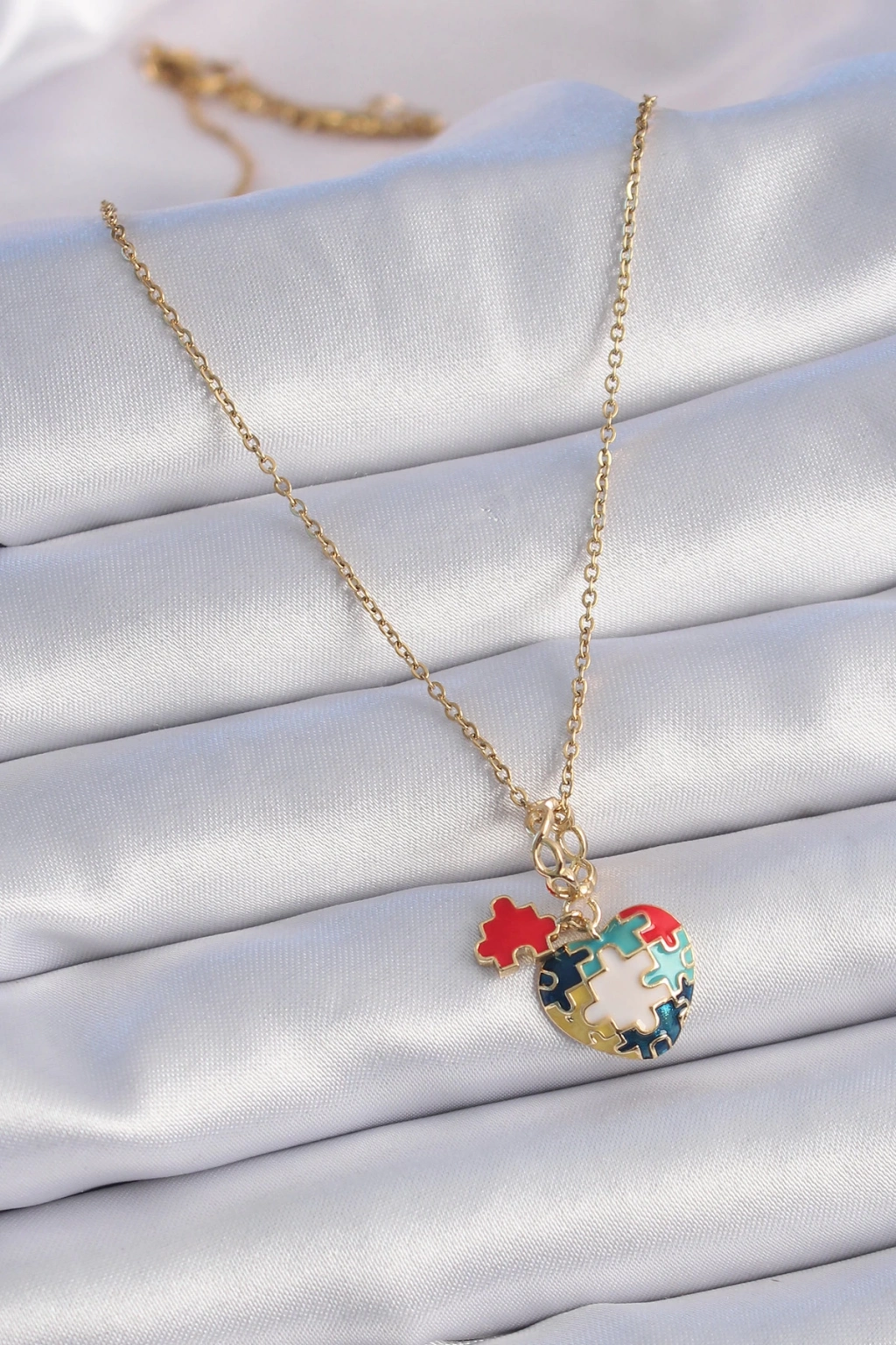 316L Çelik Gold Renk Yapboz Motif Kalp Figür Charm Model Kadın Kolye