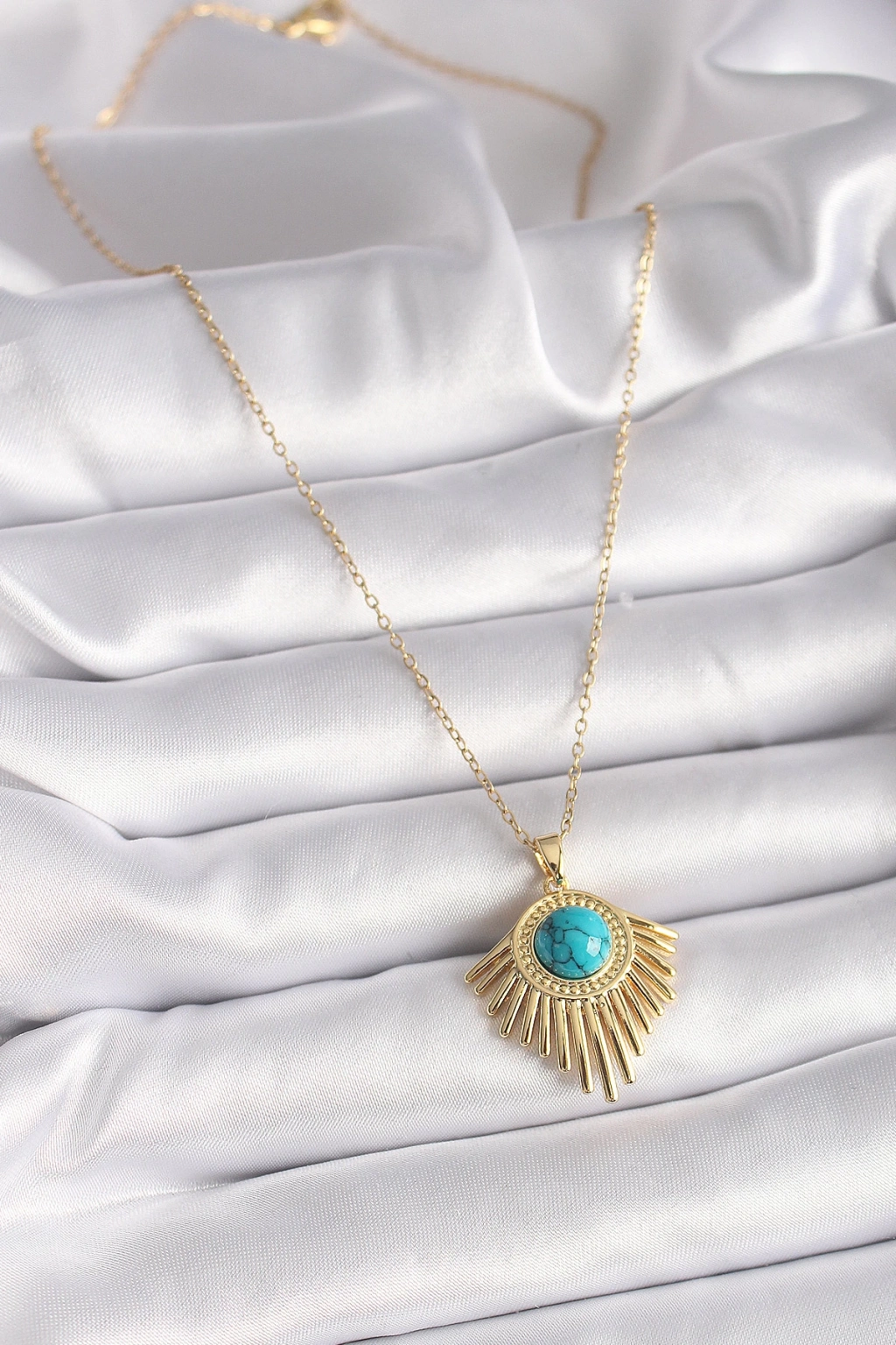 316L Çelik Gold Renk Zincir Mavi Boncuk Güneş Model Kadın Kolye