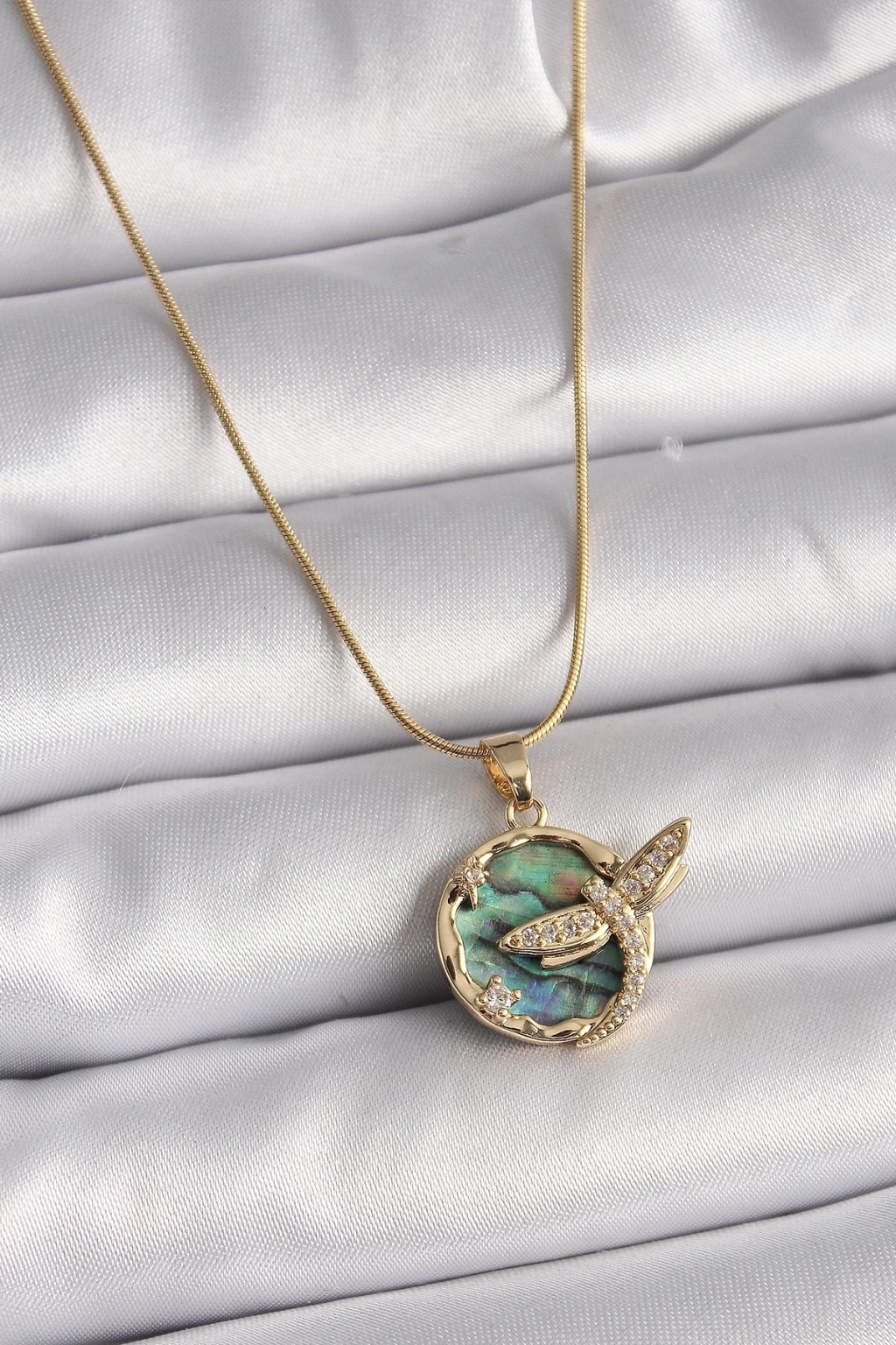 316L Çelik Gold Renk Zincir Zirkon Taşlı Yusufçuk Model Kadın Kolye