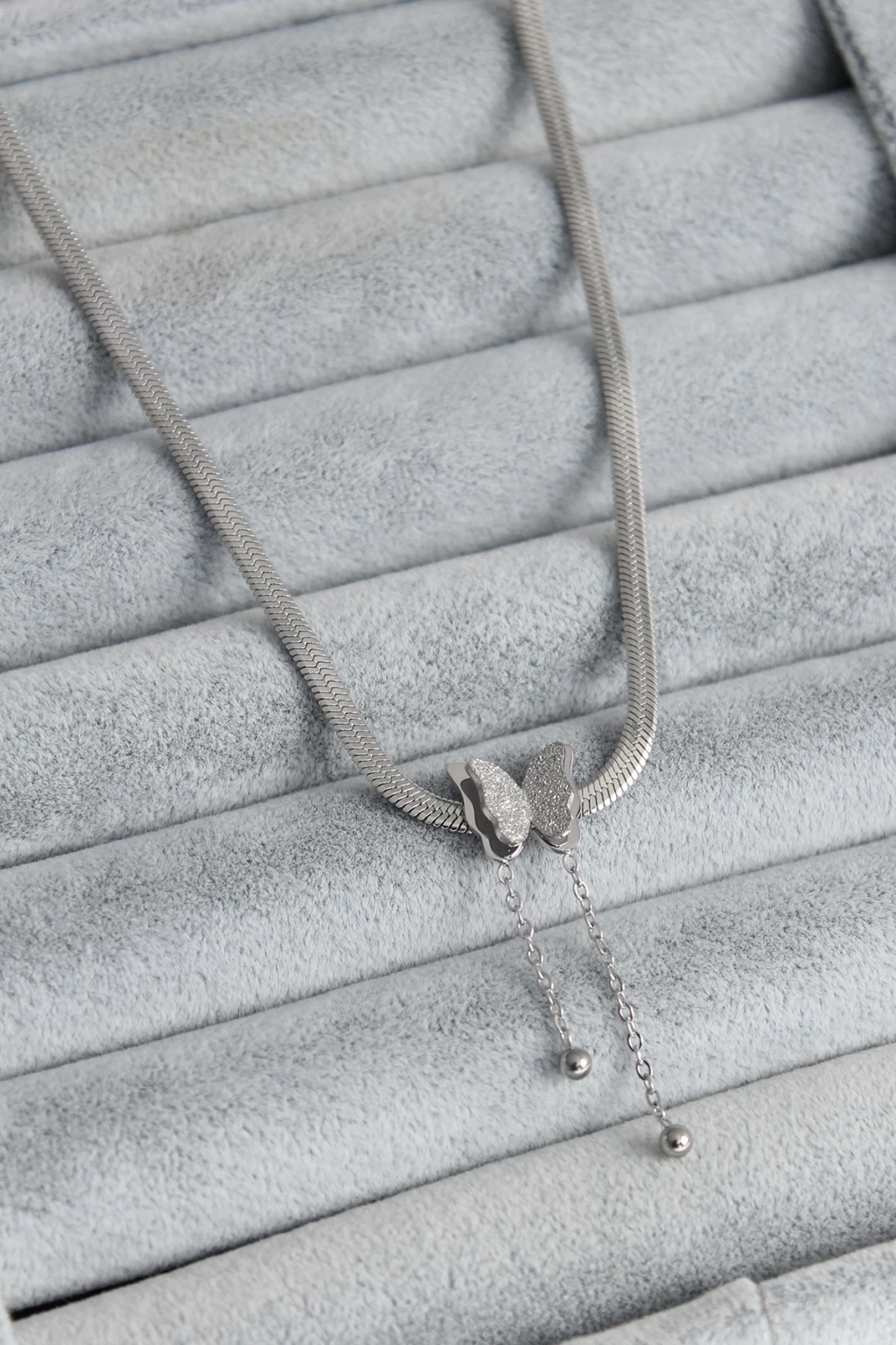 316L Çelik Gümüş Renk İtalyan Zincir Model Simli Kelebek Figür Kadın Kolye
