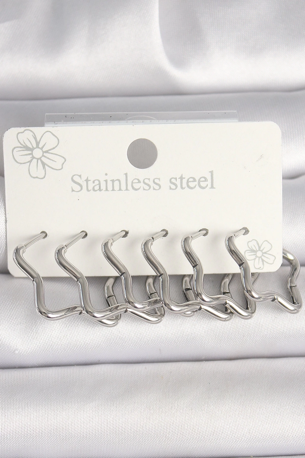 316L Çelik Gümüş Renk Yıldız Model Kadın Küpe Seti