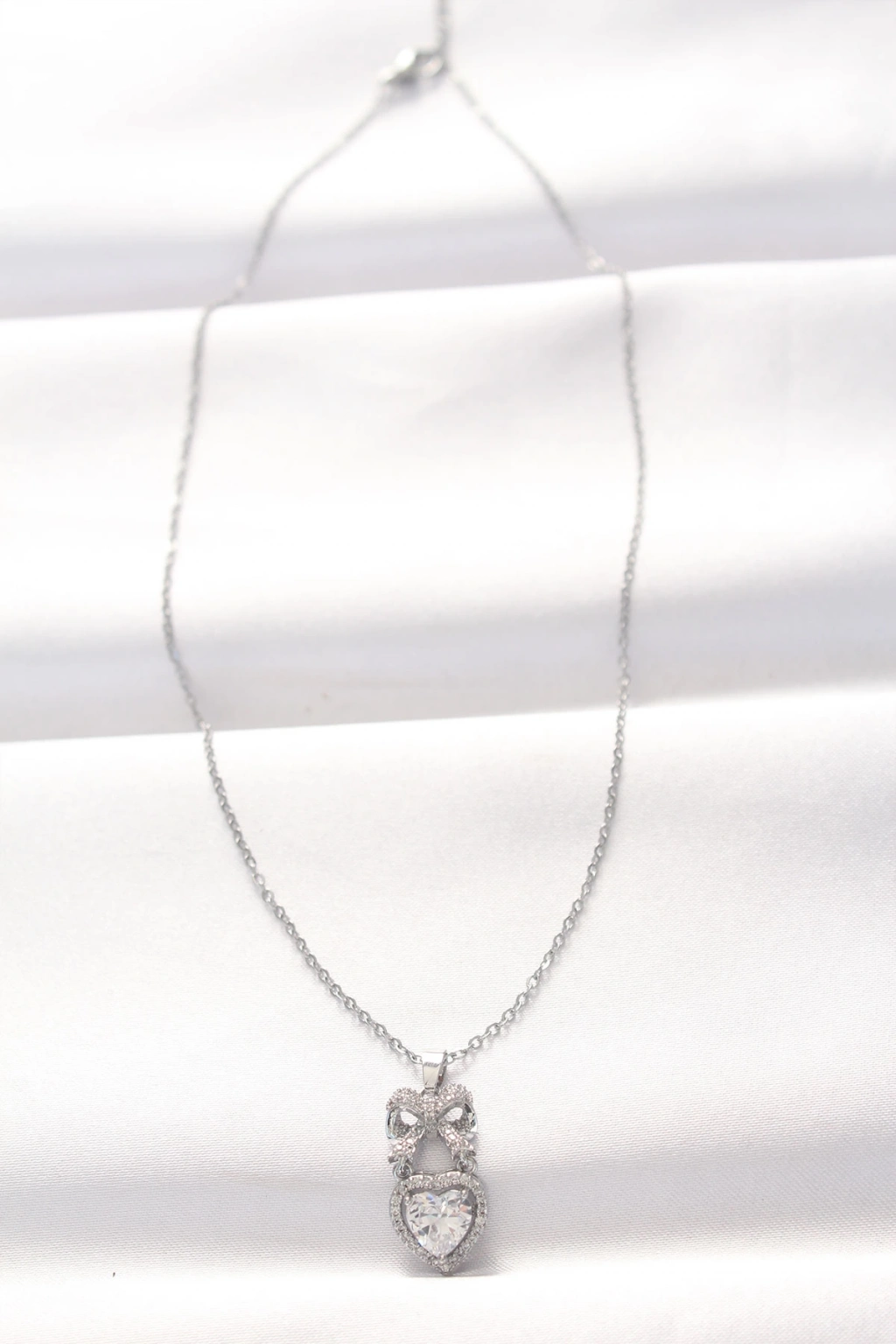 316L Çelik Silver Renk Zirkon Taşlı Kalpli Fiyonk Kolye