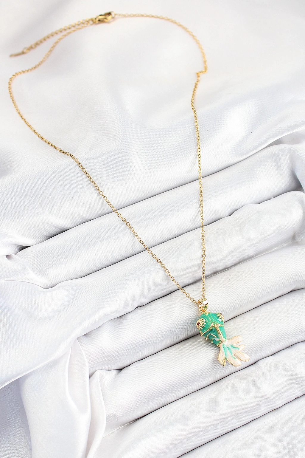 316L Çelik Zincir Yeşil Balık Model Gold Renk Kadın Kolye