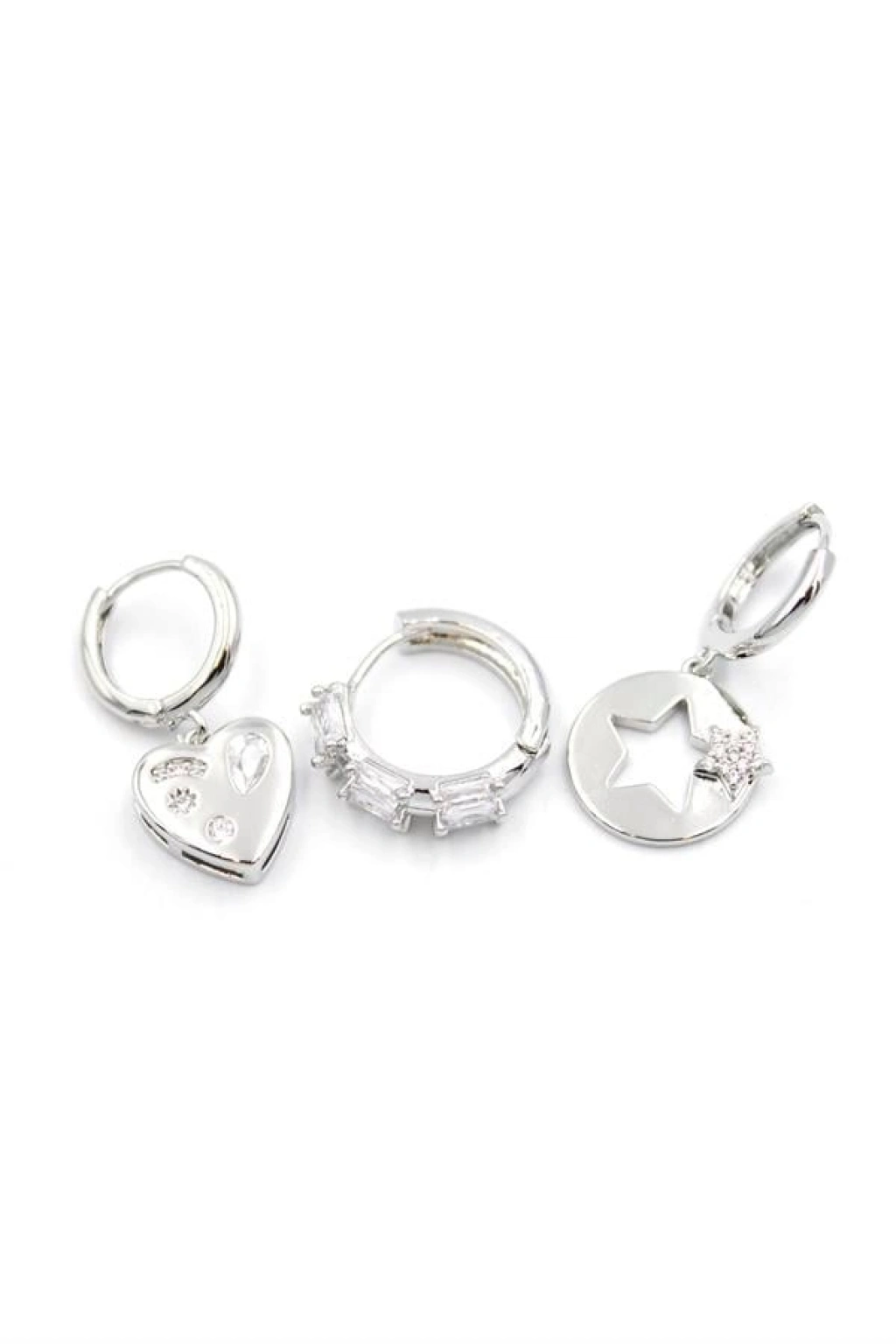 3'lü Kalp Yıldız Küpe - Gümüş