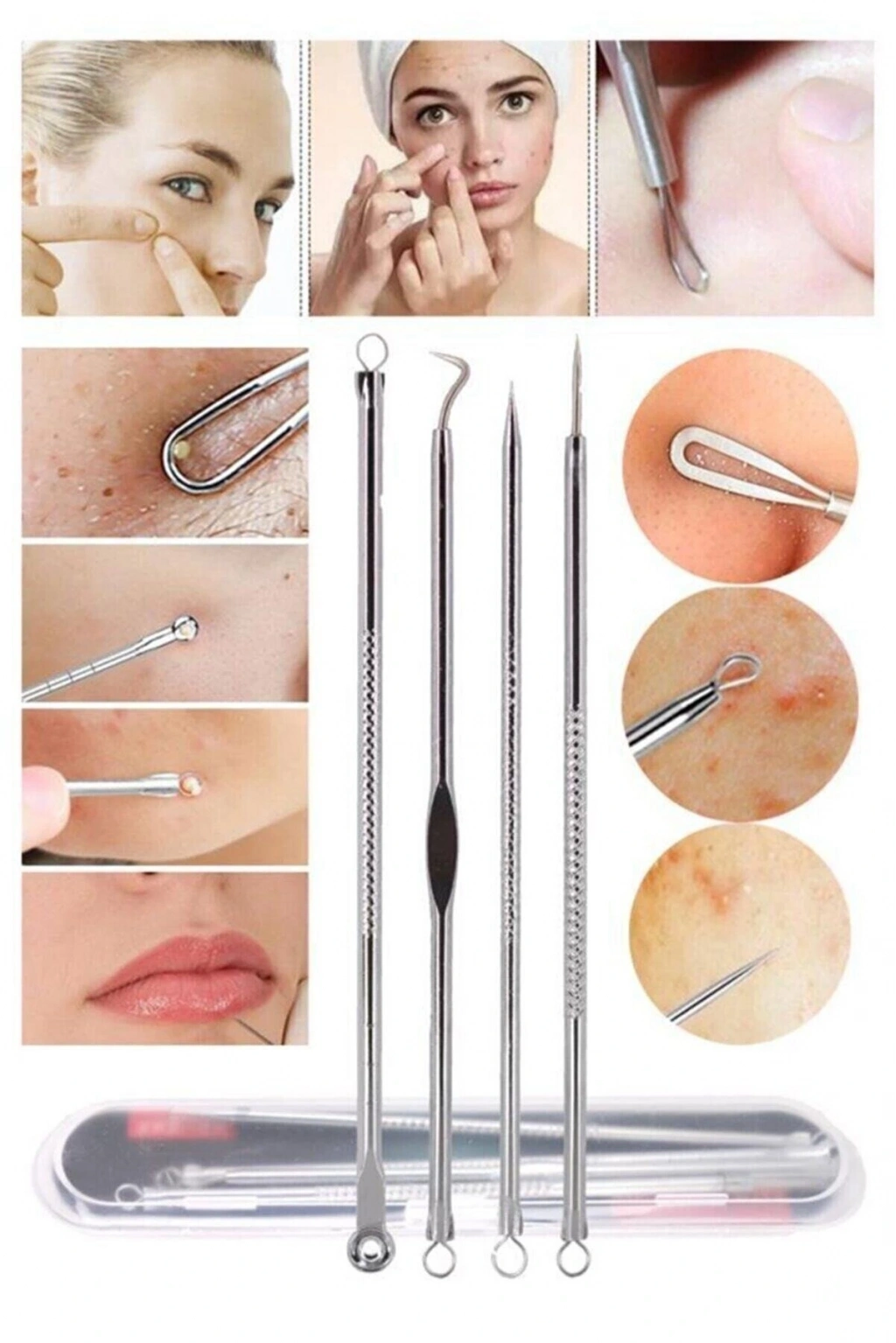 4 Lü Kutulu Paslanmaz Komedon Akne - Siyah Nokta Temizleyici Set
