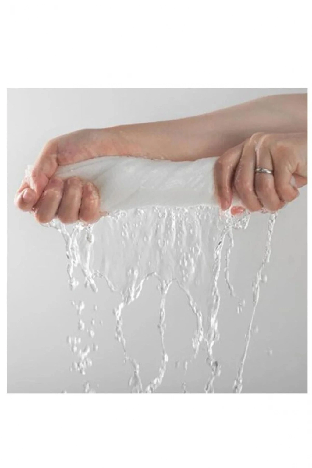 Özel üretilmiş kumaş sayesinde yüksek su emiciliği sağlar ve pamuk bırakmaz.