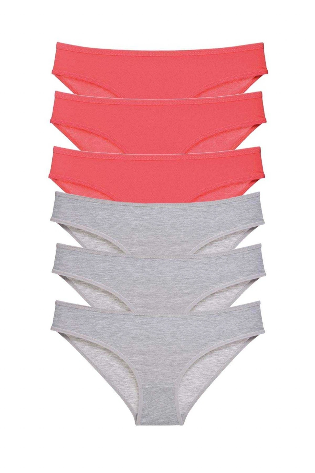 6 adet Süper Eko Set Likralı Kadın Slip Külot Fuşya Gri