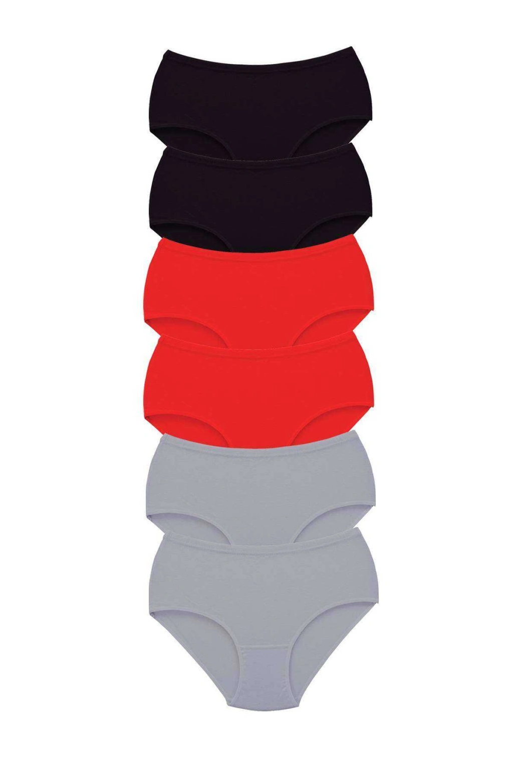 6 Adet Tutku Kadın Yüksek Bel Bato Kalın Lastik Külot Siyah Kırmızı Gri