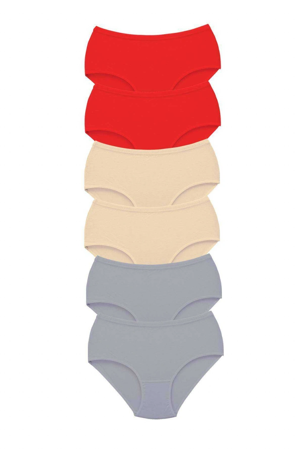 6 Adet Tutku Kadın Yüksek Bel Bato Kalın Lastik Külot Kırmızı Ten Gri