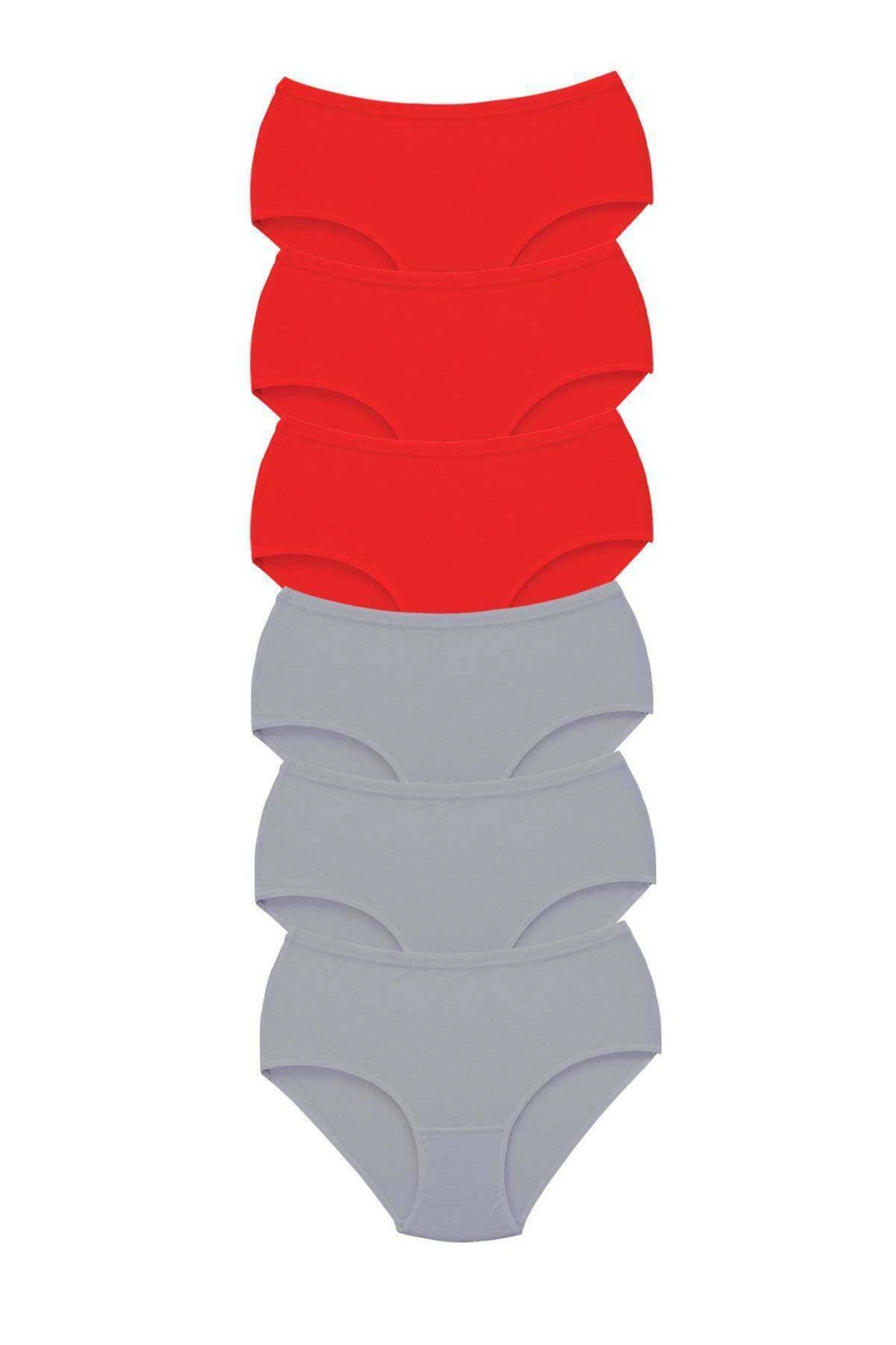 6 Adet Tutku Kadın Yüksek Bel Bato Kalın Lastik Külot Kırmızı Gri