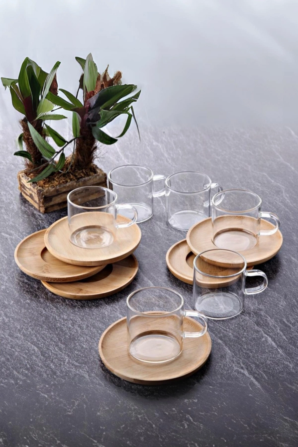 Şeffaf camın zarafeti ve bambunun doğallığı bir arada! 6’lı cam çay fincanı seti, misafirlerinize şık bir sunum yapmanızı sağlar. Hem günlük kullanım hem de özel davetler için idealdir.