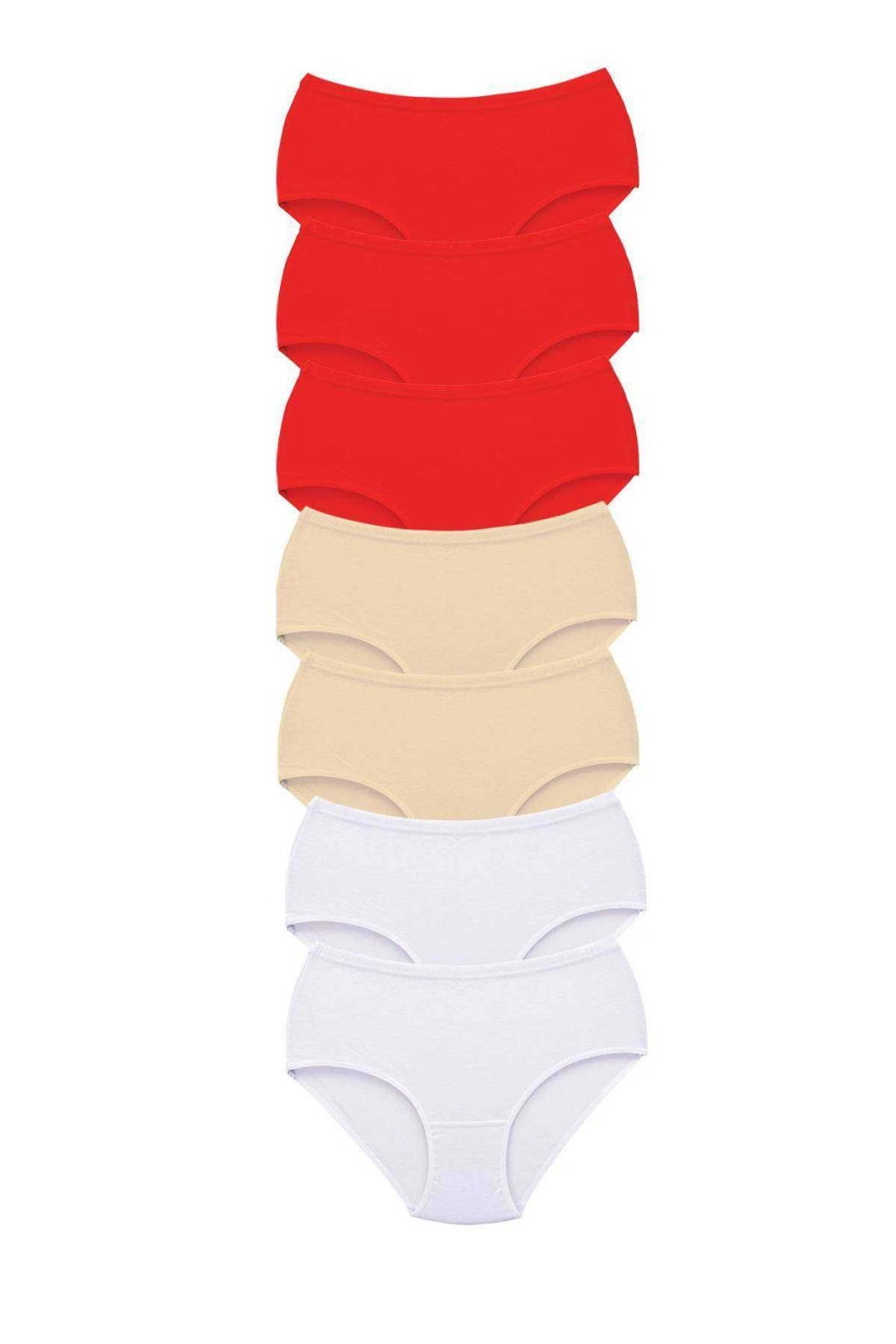 7 Adet Tutku Kadın Yüksek Bel Bato Kalın Lastik Külot Kırmızı Ten Beyaz