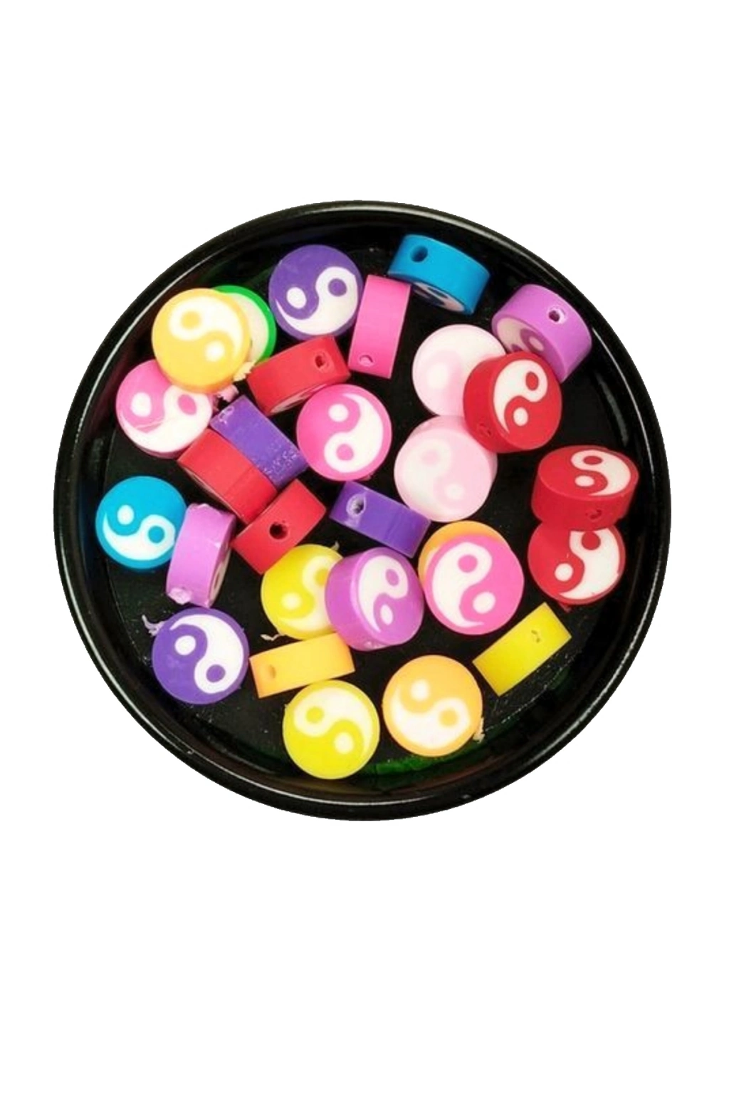 90 Adet 10 mm Polimer Kil Fimo Boncuk Takı Bileklik + 5 Metre Lastikli Misina Hediye - Renkli Yin Yang