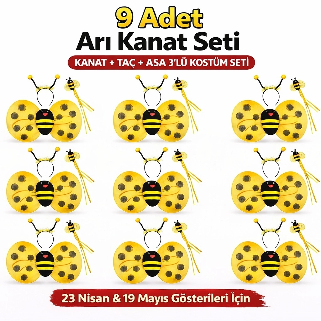 9’lu Arı Kostüm Seti – Kanat Taç Asa