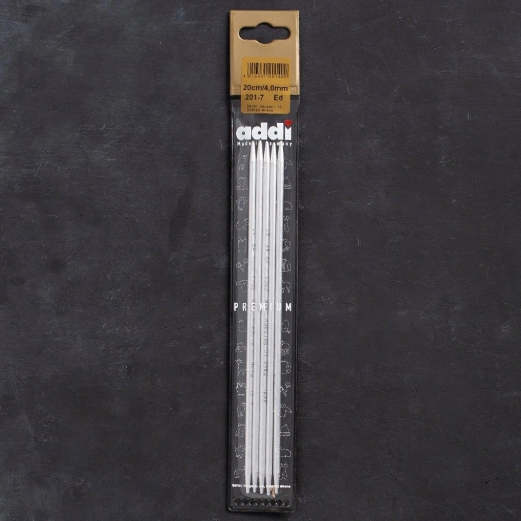 Addi'nin 201-7 serisi, çift uçlu ve yüksek kaliteli çorap şişleridir. Parlak gri alüminyumdan üretilmiştir, hafif ve örmesi kolaydır. Şiş boyu 20 cm'dir.
