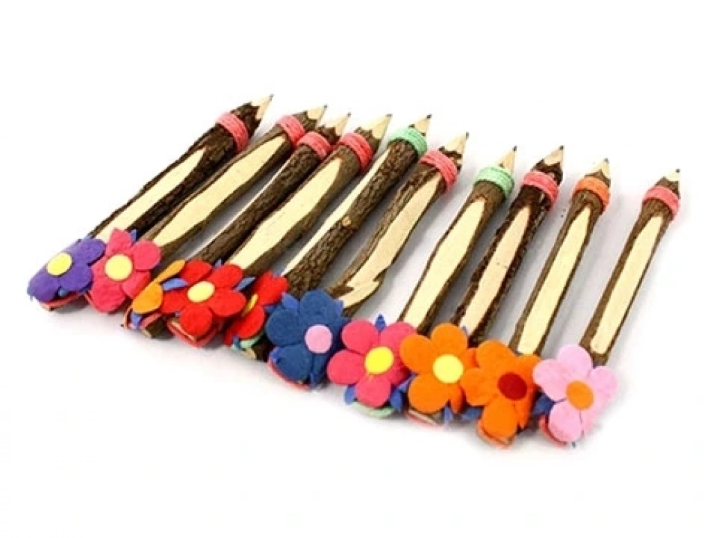 Evinizde,masanızda,ofisinizde bulunması gereken ilgi çekici çiçek ve ip süslemeli ağaç kurşun kalemler.