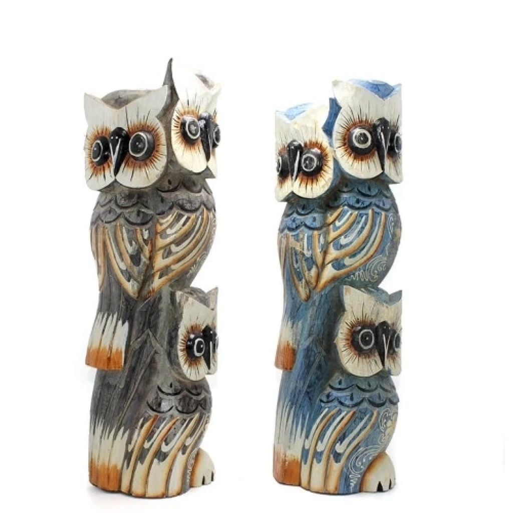 AHŞAP 3'LÜ BAYKUŞ 50 CMÜrün ÖzellikleriDoğal ahşaptan el işçiliğiyle üretilmiş 3’lü baykuş figürü, dekoratif tasarımıyla ev ve ofis ortamlarına sıcak bir atmosfer kazandırır. 50 cm yüksekliğinde olan bu özel tasarım, otantik ve şık bir görünüm sunar. Detaylı oyma işlemesi ve özel renklendirme tekniği sayesinde her biri benzersizdir. Ahşabın doğal dokusu korunarak dayanıklı ve uzun ömürlü hale getirilmiştir. Doğal ve mistik enerjisiyle dikkat çeken baykuş figürleri, bilgeliği ve koruyucu enerjiyi simgeler.Paket İçeriği1 Adet Ahşap 3’lü Baykuş Dekoratif Figür (50 cm)