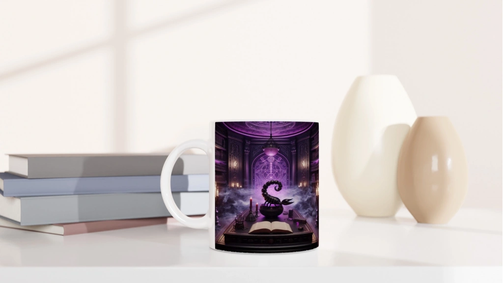 Zodyak Kütüphanesi’nin en karanlık ama en güçlü köşesinden çıkan bu özel kupa, Akrep burcunun derin ruhunu bilgiyle bütünleştiriyor. Sessiz ama etkili bir duruş.