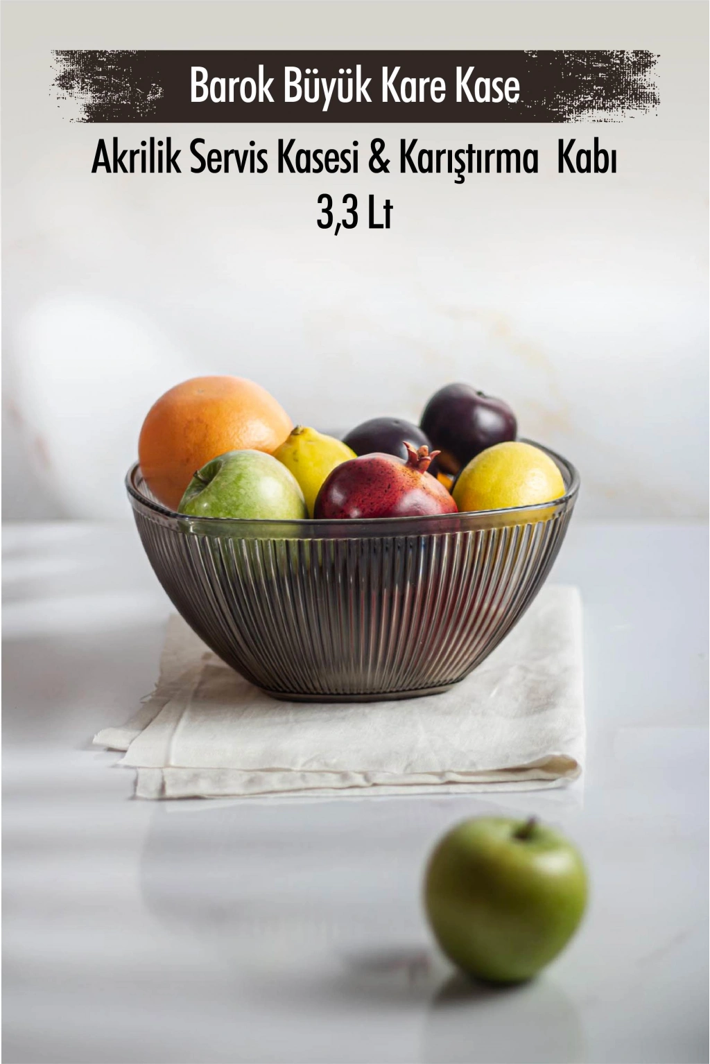 Akrilik Barok Füme Büyük Kare Meyve & Salata Kasesi & Karıştırma Kabı / 3,3 Lt (CAM DEĞİLDİR)