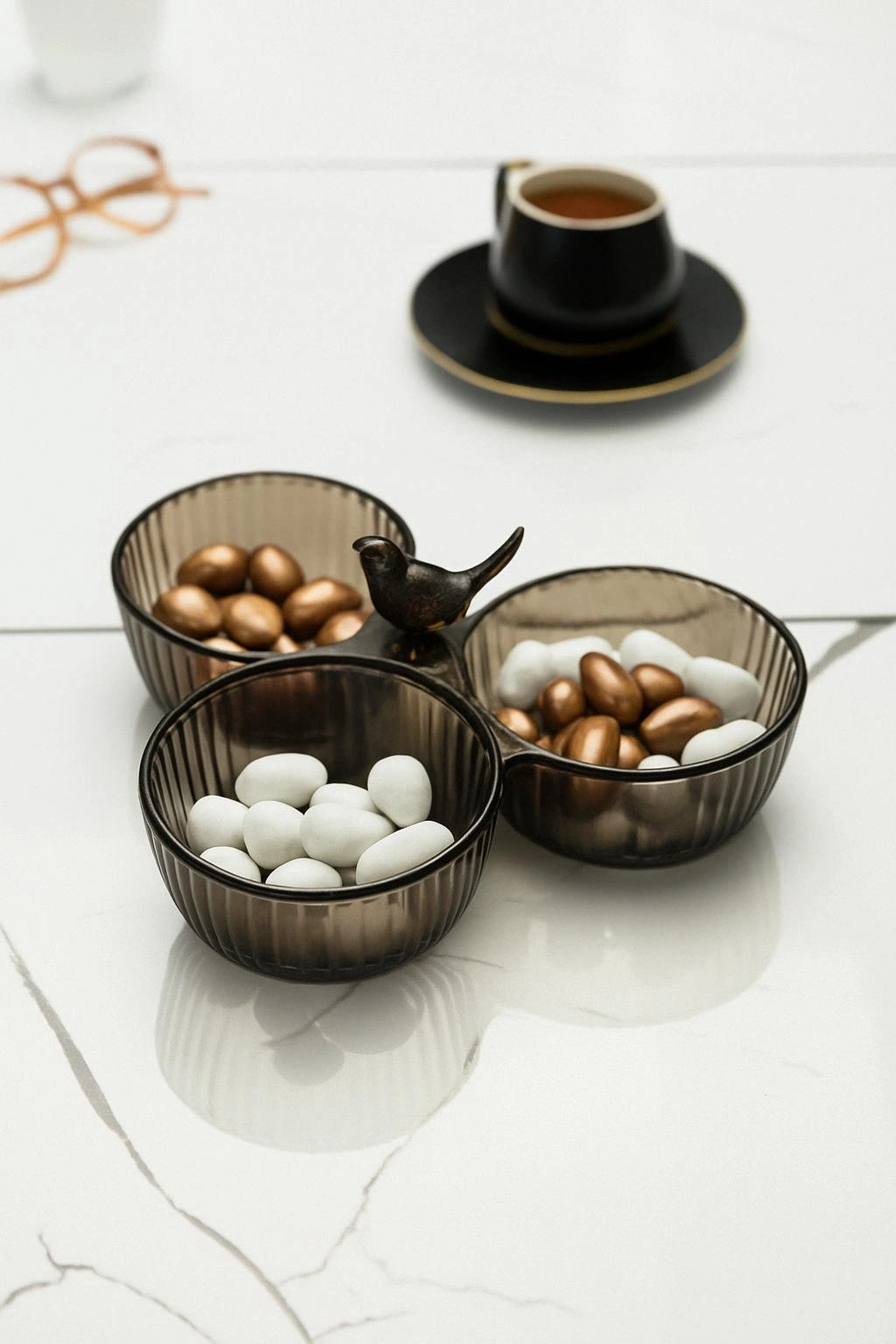 Akrilik Kuşlu Çerezlik Sunumluk Şekerlik Füme ( CAM & PORSELEN DEĞİLDİR )