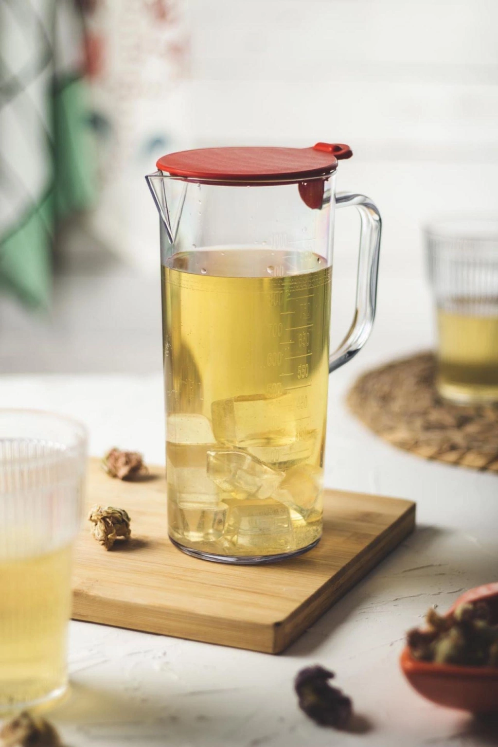 Akrilik Ölçekli 1 Lt Sürahi & Ölçü Kabı (Buzdolabı Kapak Rafına Sığar)