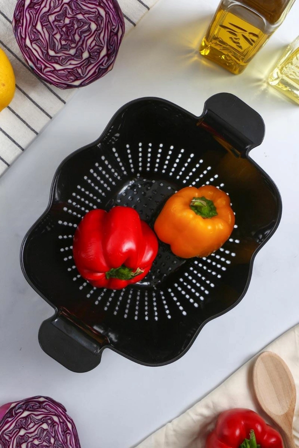 Akrilik Siyah Makarna Süzgeçi & Sebze Meyve Süzgeçi