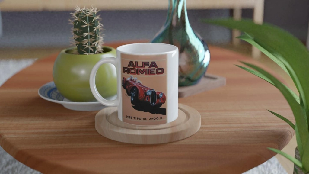 Tarihi yarış ruhunu modern çizgilerle birleştiren Alfa Romeo baskılı bu kupa bardak, koleksiyon değeri taşıyan bir tasarım sunar.