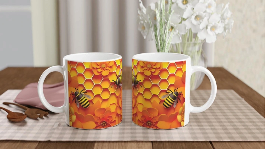 Arı Petek Baskılı Kupa Bardak ile doğanın zarafetini her yudumda hissedin. Bal peteği desenleri ve sevimli arı figürleriyle süslenen bu özel tasarım kupa, hem göz alıcı hem de fonksiyonel. Kendiniz ya da doğa sever sevdikleriniz için harika bir hediye!