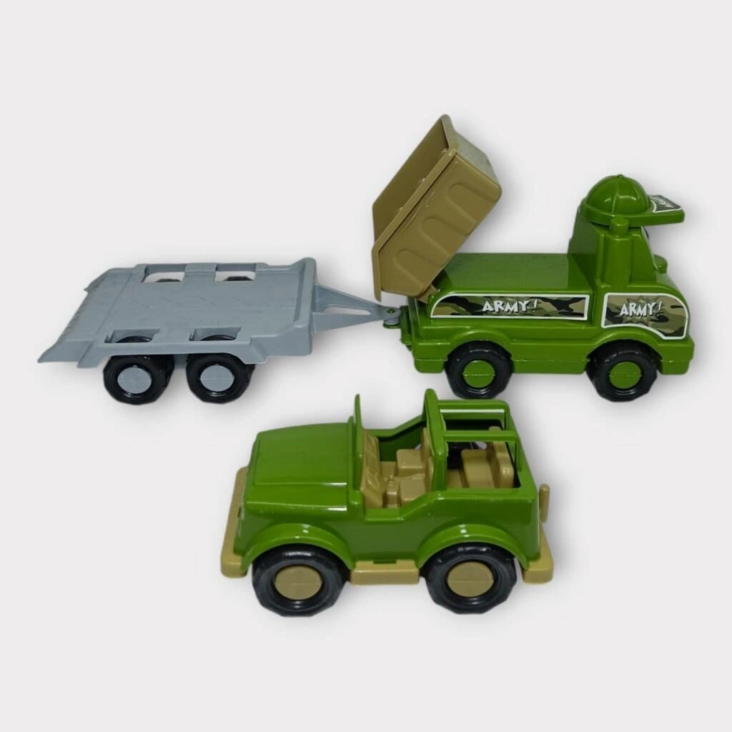 Araç seti 3 parçadan oluşmaktadır. Paket içisinde 1 er adet damperli kamyon , taşıyıcı ve araba bulunmaktadır.