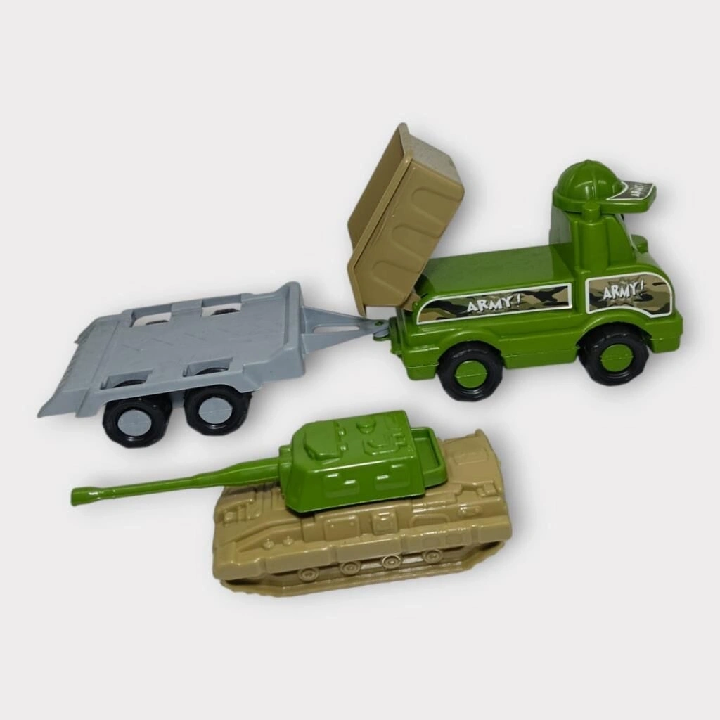 Araç seti 3 parçadan oluşmaktadır. Paket içisinde 1 er adet damperli kamyon , taşıyıcı ve tank bulunmaktadır.