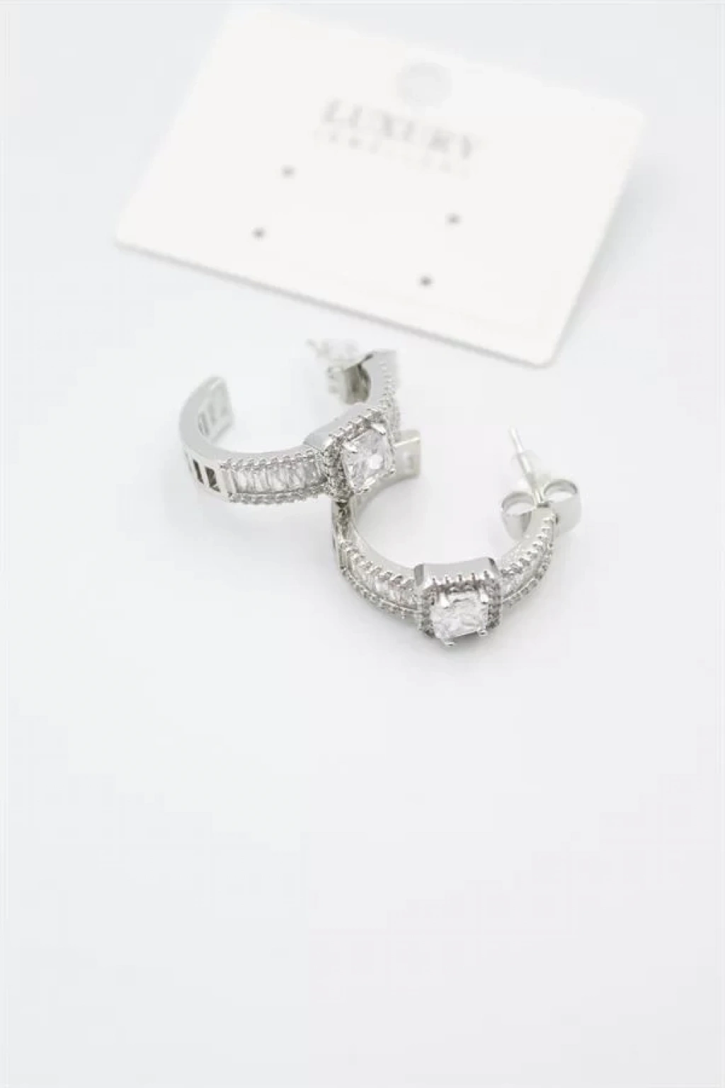 Baget Taşlı Küpe - Gümüş