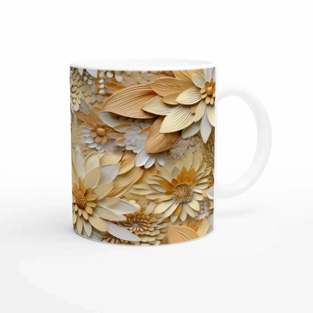 Bal Renkli Papatyalar Kupa Bardak, detaylı yaprak dokusu ve sıcak tonlarıyla doğallığı ve huzuru bir arada yansıtır. Günlük kullanım için ideal olduğu kadar şık bir hediye olarak da öne çıkar.