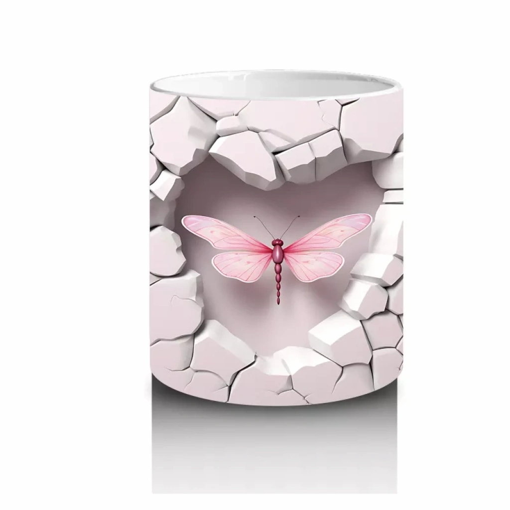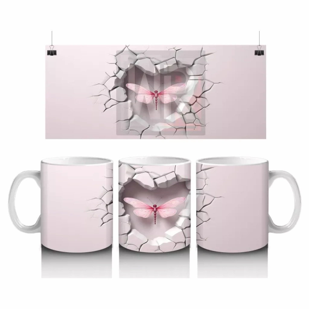 Beyaz çatlak duvarın arasından süzülen pembe yusufçuk, zarif ve romantik bir atmosfer yaratıyor. Doğal ve feminen detayları sevenler için özel bir kupa tasarımı.