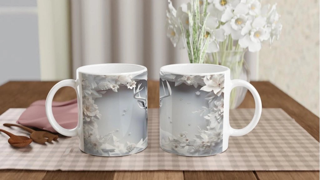 Beyaz Çiçekler Arasında Asil Geyik Desenli Baskılı Kupa Bardak, sade ve zarif tasarımıyla dikkat çeker. Kupanın merkezinde yer alan beyaz geyik figürü, çevresini saran çiçeklerle bütünleşerek huzur dolu bir atmosfer yaratır. Geyik baskılı kupa, doğa severlere estetik ve anlam yüklü bir içim deneyimi sunar.