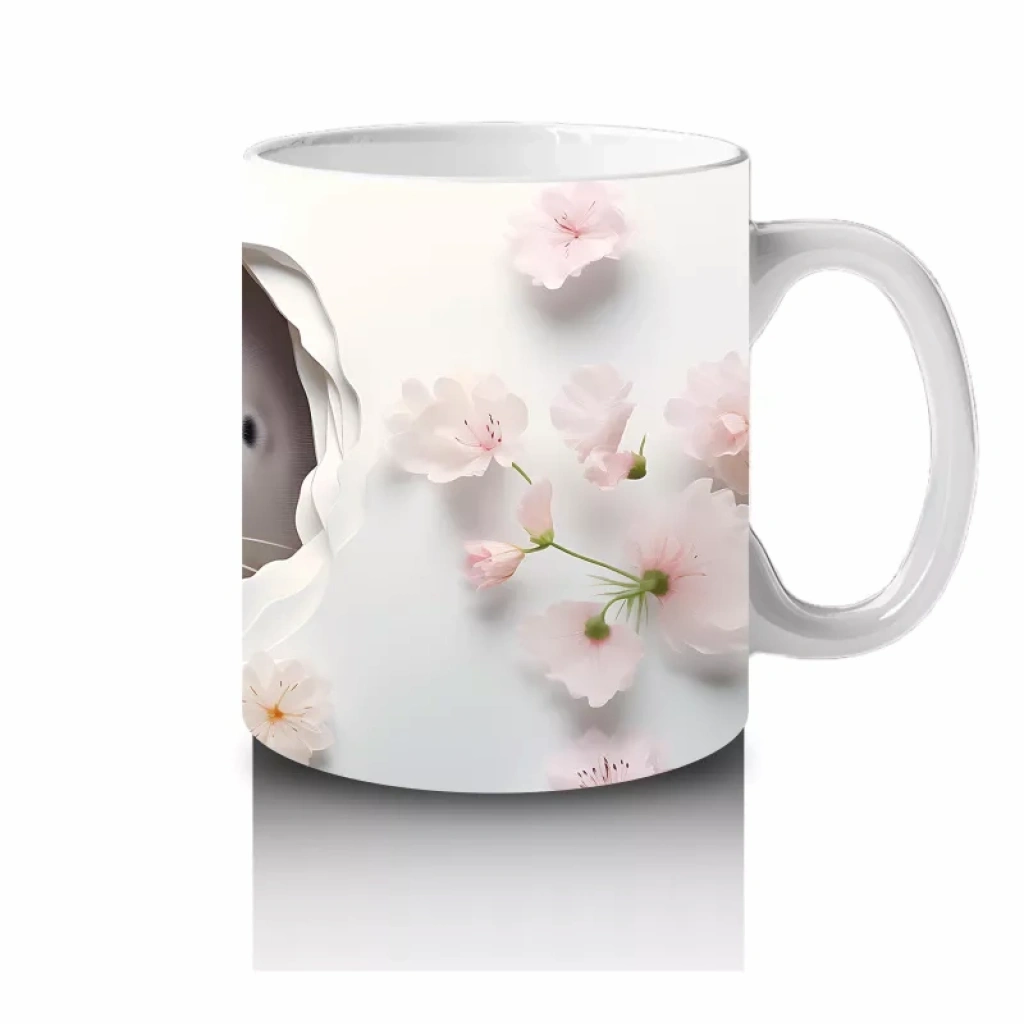 Beyaz Çiçekli Fon Üzerinde Şirin Su Samuru – Baskılı Kahve Kupası