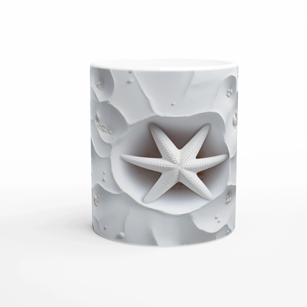 Beyaz Deniz Yıldızı ve Mercan Taneleri Su Altı Temalı Kupa Bardak