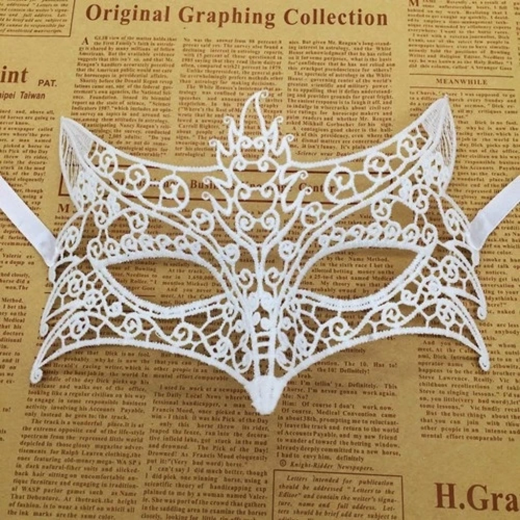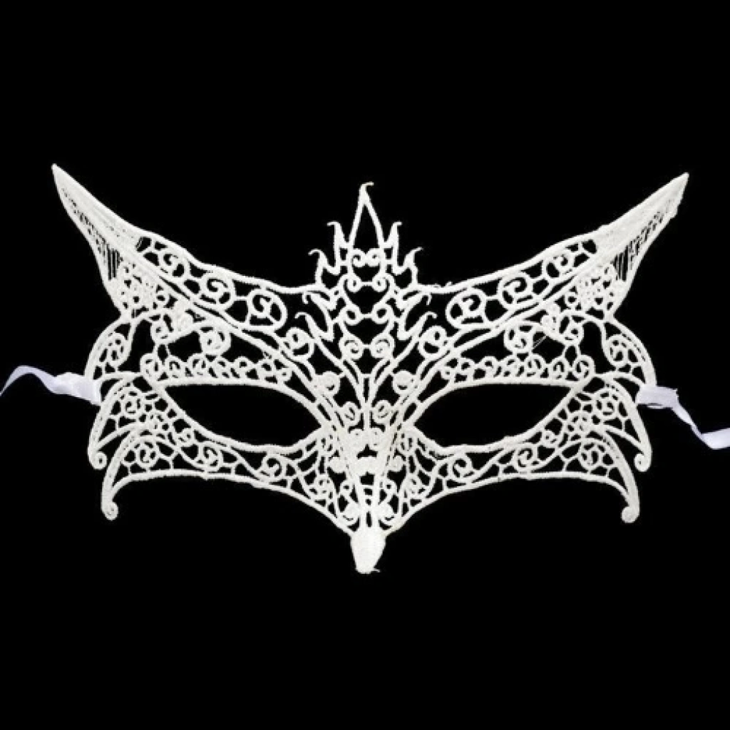 Beyaz Renk Dantel Kesim Balo Maskesi 7 No