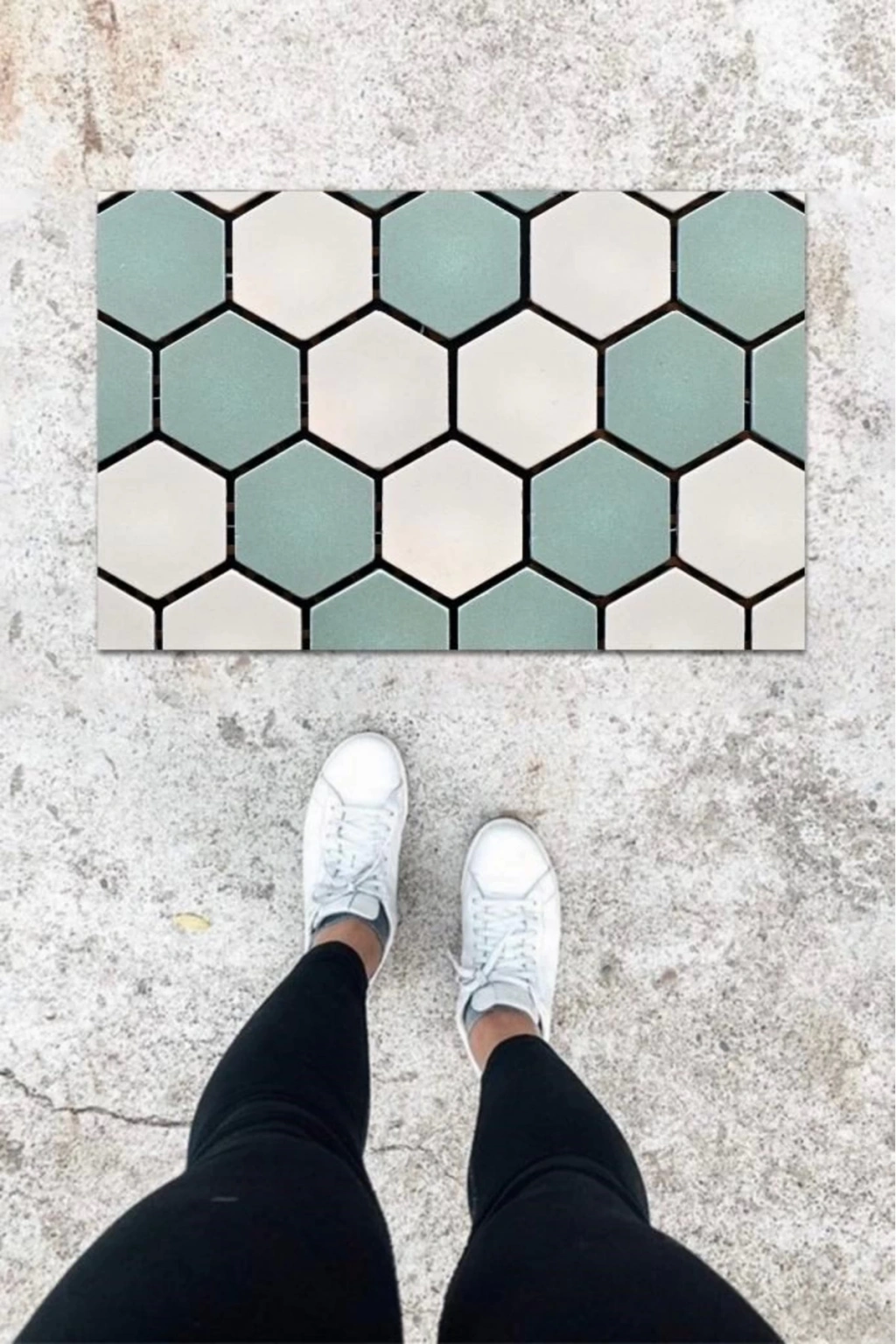 BFS Dijital Baskı Mavi Petek Desen Kapı Önü Paspası K-1059